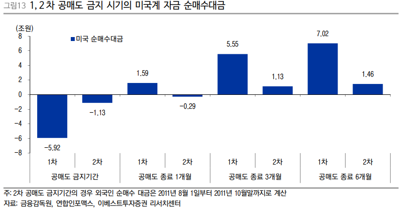 ◆ 이번 공매도 금지 기간동안 미국계 자금은 약 12.1조원을 순매도 했는데, 과거 1, 2 차와 비교해도 큰 금액인만큼 공매도 금지 종료 이후 매수세를 보일 가능성 높음