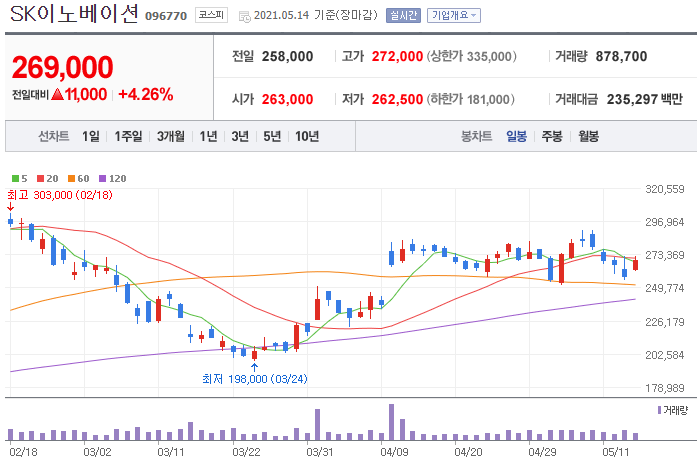 2021년 1분기 실적이 괜찮았고, 배터리 관련 1조 원의 소송비용을 2023년부터 매출액에 연동해 매출 원가화 할 계획이고,이 건은 주가에 이미 반영되어 있는 상황이라 앞으로 좋을 것으로 증권사들이 전망하고 있으니, 관심이 필요한 시점이라 생각되네요.