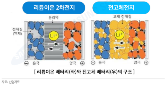 ==> 리튬이온 배터리 대비 전고체 배터리가 화재 발생 위험이 낮다.
