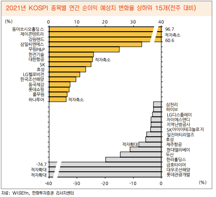 KOSPI 2021년 연간 순이익 예상치 전주 대비 0.4% 상향