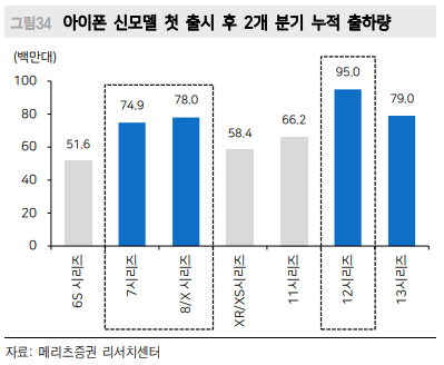 2017~18년 판매 호조를 나타냈던 아이폰 모델들의 교체주기가 도래해 2020~ 21년 신모델에 대한 기대가 상승하였지만 예상보다 더 좋았던 아이폰12시리즈의 판매량으로 아이폰13 시리즈 흥행에 대한 불확실성이 존재하는 상황이다. 애플의 아이폰13 시리즈 생산 계획은 약 8,000만대로 추정하며 흥행 여부는 교체수요와 함께 신규수요가 결정할 전망이다. 아이폰12 mini의 판매 저조로 인해 아이폰13 시리즈는 고가 모델 중심의 생산이 예상되며 LG이노텍의 수익성 개선에 영향을 줄 것으로 예상한다.