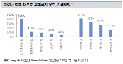 - 경기는 L자가 아닌 U자 회복국면에 진입, 모든 종목이 상승할 때, 손해보험주는 제외.