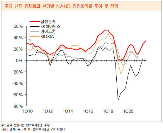 - 하반기 낸드 업체들의 수익성은 과거 고점 대비 70~80% 수준 회복 전망.