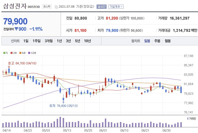 7월 7일 2Q21 삼성전자 실적 발표, 기대 이상의 실적으로 컨센서스 상회했으나, 주가는 하락...
