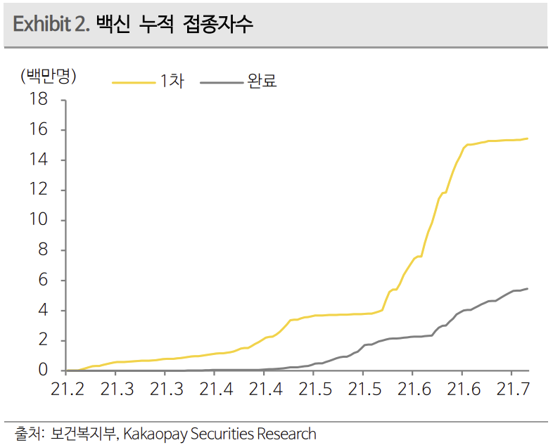 - 국내 백신 1차접종 비율이 29.9%, 완전접종 비율은 10.6%로 상승세.
