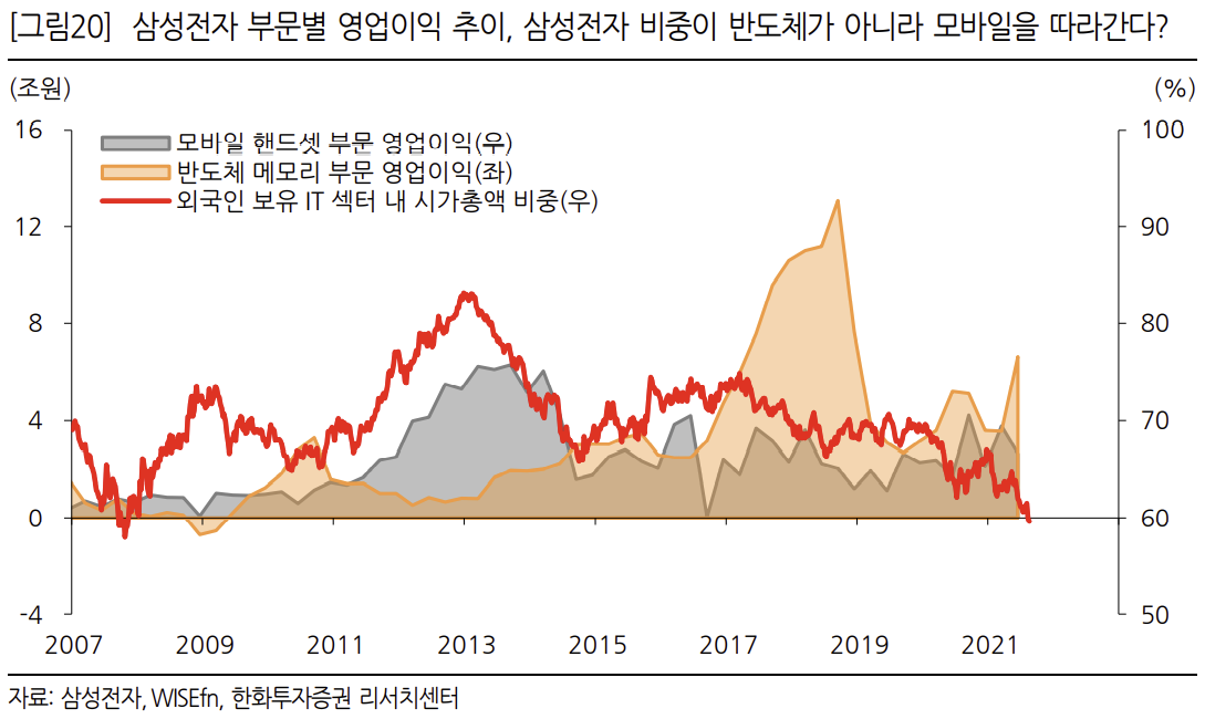 그러나 반도체는 대규모 시설 투자 집행과 이익 회수가 반복되는 장치 산업이자 사이클 산업이다. 반도체에 대한 문제라면 사이클이 길어지고 짧아지든 간에 과거 사이클 변곡 점에서도 대규모 매도나 매수가 관찰됐어야 하나, 그런 모습은 눈에 띄지 않는다.