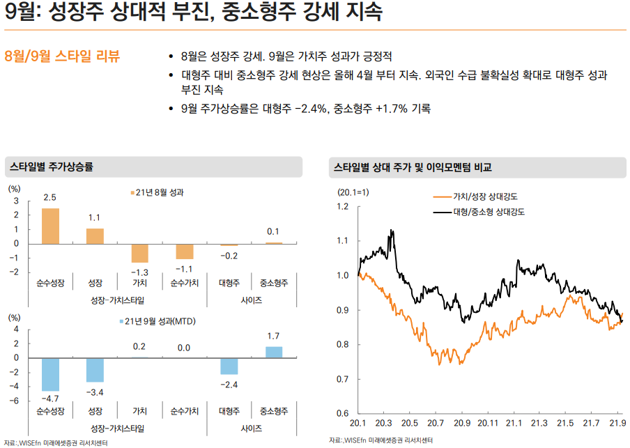 - 3분기 실적 시즌에는 대형주, 중소형주의 이익증가율 비슷.