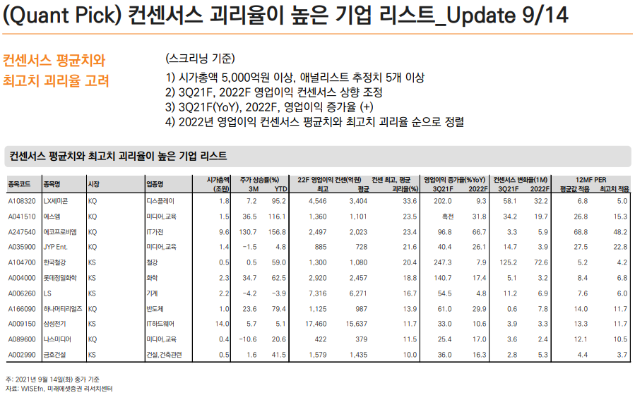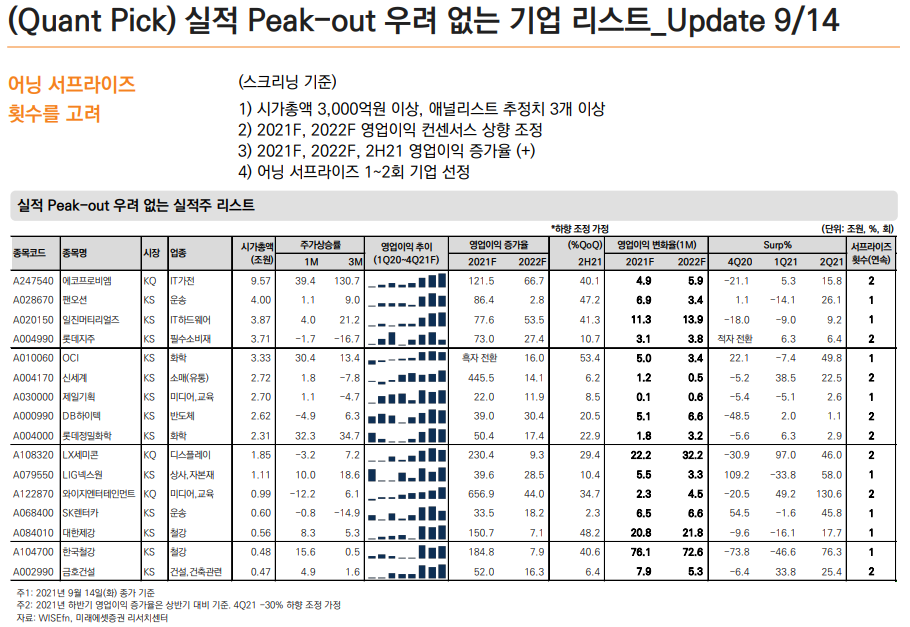 - 이익 모멘텀이 좋은 기업 중에서 어닝서프라이즈가 1~2번 나왔던 것.