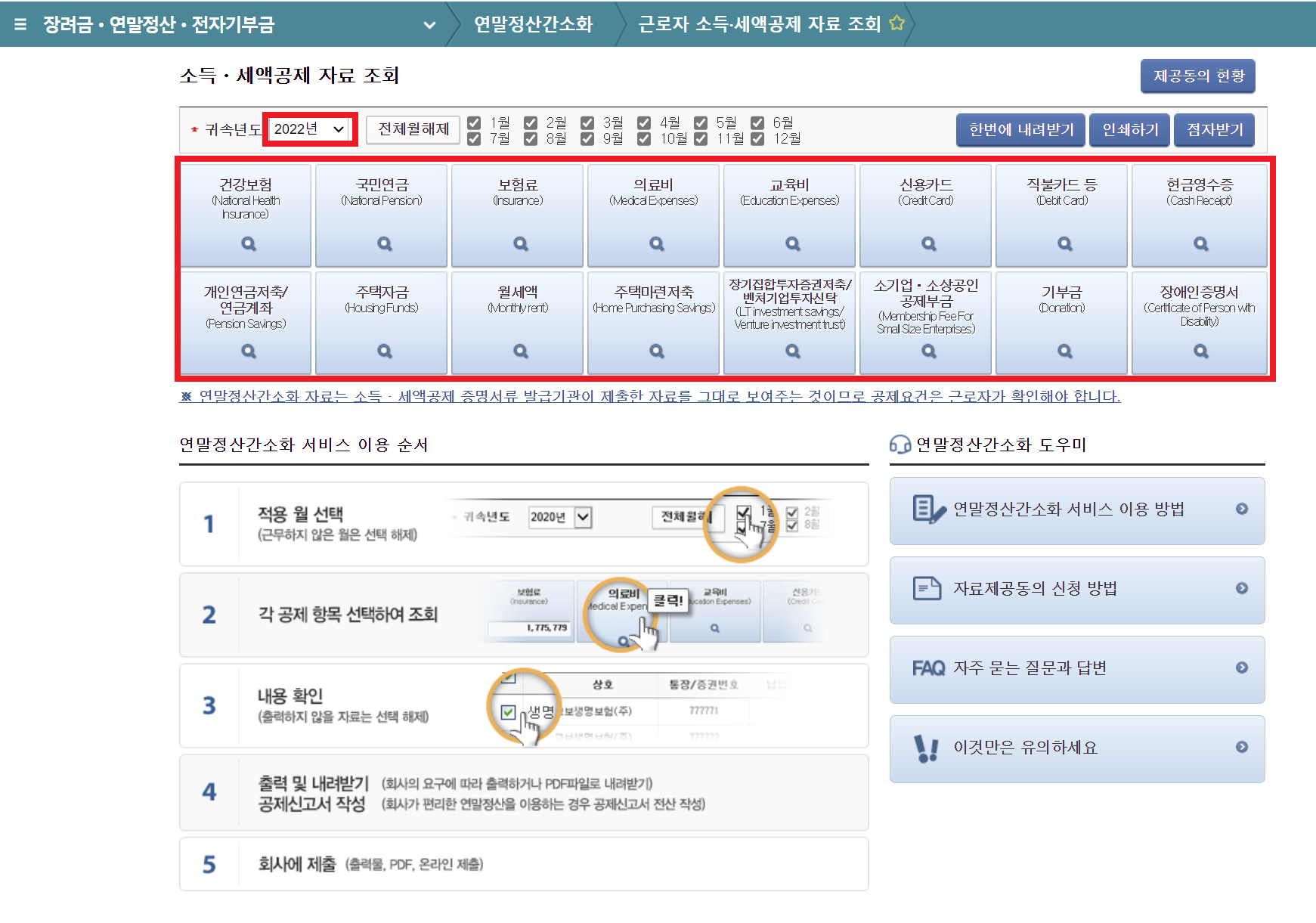 | 근로자가 연말정산 간소화자료를 조회하여 출력하는 방법 |