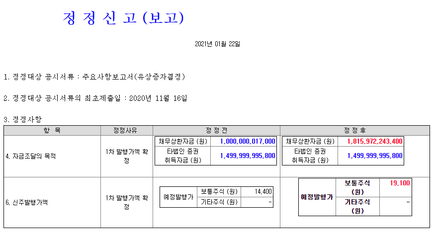 (공시 후에 내용 변경이 있어 정정공시를 한거 같다.)