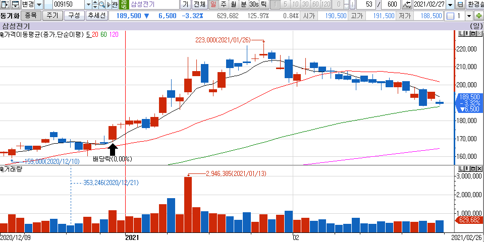 21년 2월 26일 종가기준 주가도 가격적으로 괜찮은 구간이라 생각되네요.