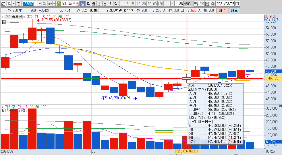 - 오이솔루션 : 상승하다 보합(횡보?)