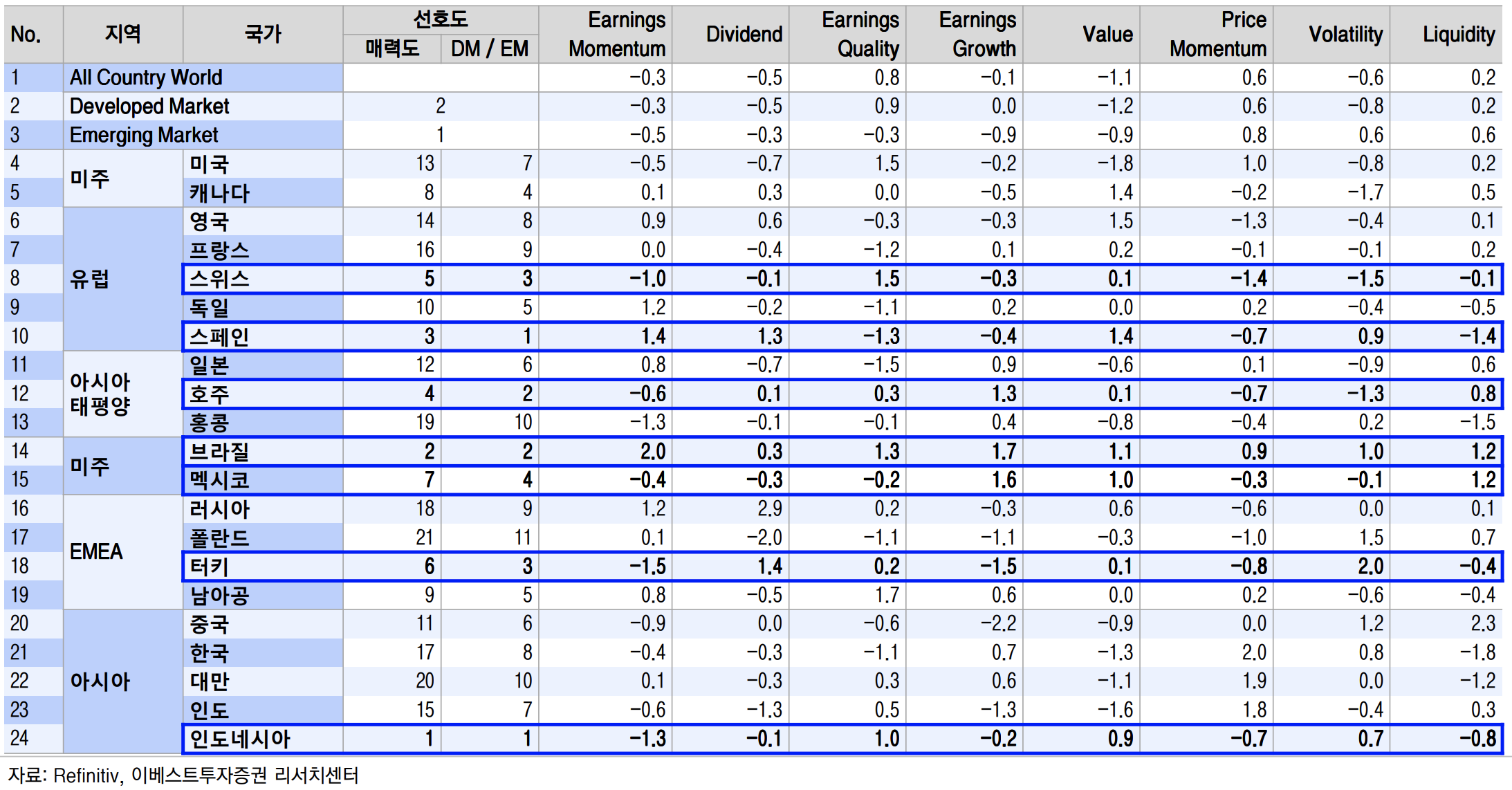 ● 결국 국가별 차별화 & 위험회피에 대한 고려로 인해 글로벌 주식에 대한 다소 보수적인 접근을 권고하는 것으로 해석