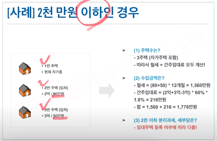 월세에 대해 과세합니다. 단, 전세는 비과세