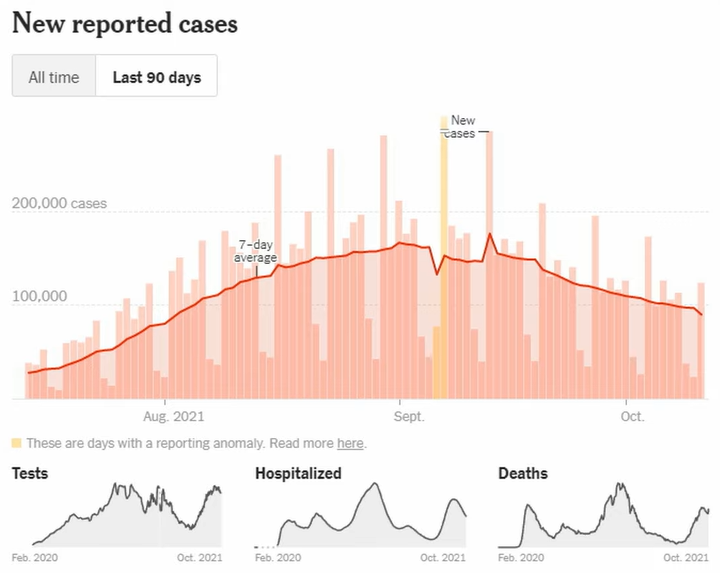 - 미국 코로나19 확진자 줄어들고 있음. (직전 고점대비 40% 감소)