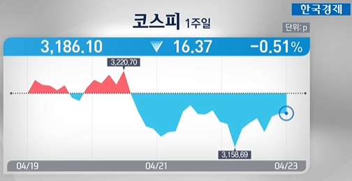 4월 23일(금) 코스피지수는 3186.10, 코스닥지수는 1026.82로 금주 장을 마감했다.